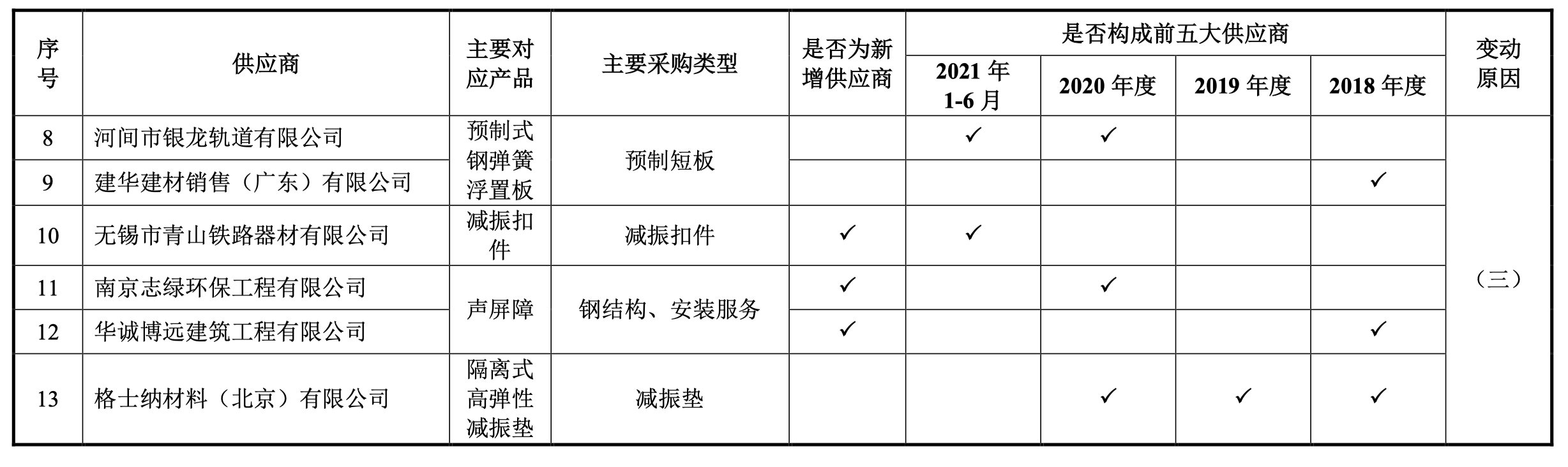 截至目前,九州一轨弹簧供应商较为稳固,但由于原材料采购、委外加工规模增长,以及技术工艺与项目需求变更等因素,整体来看报告期内公司前五大供应商变动较大。